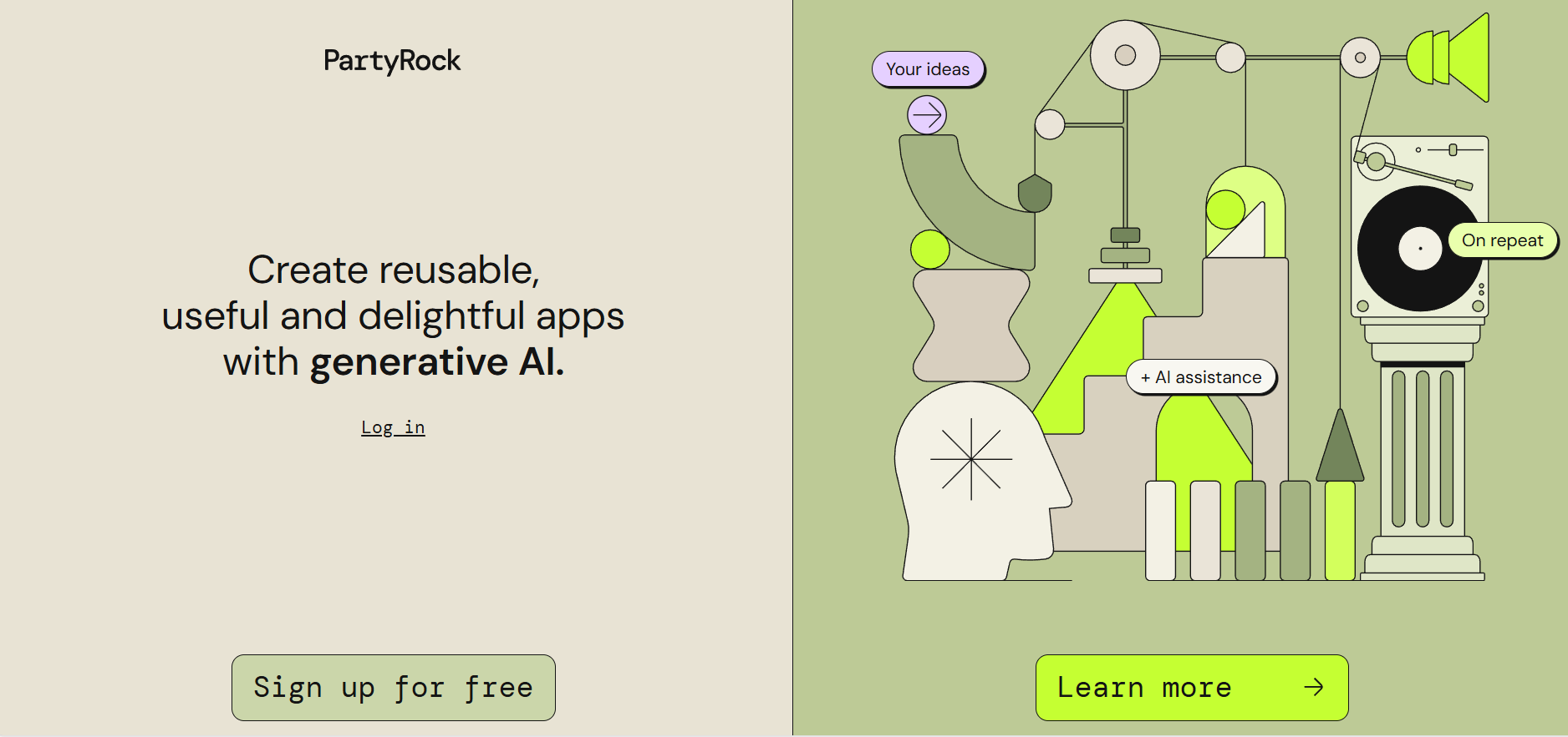 Website for PartyRock by AWS where you can build you own AI-generated apps
